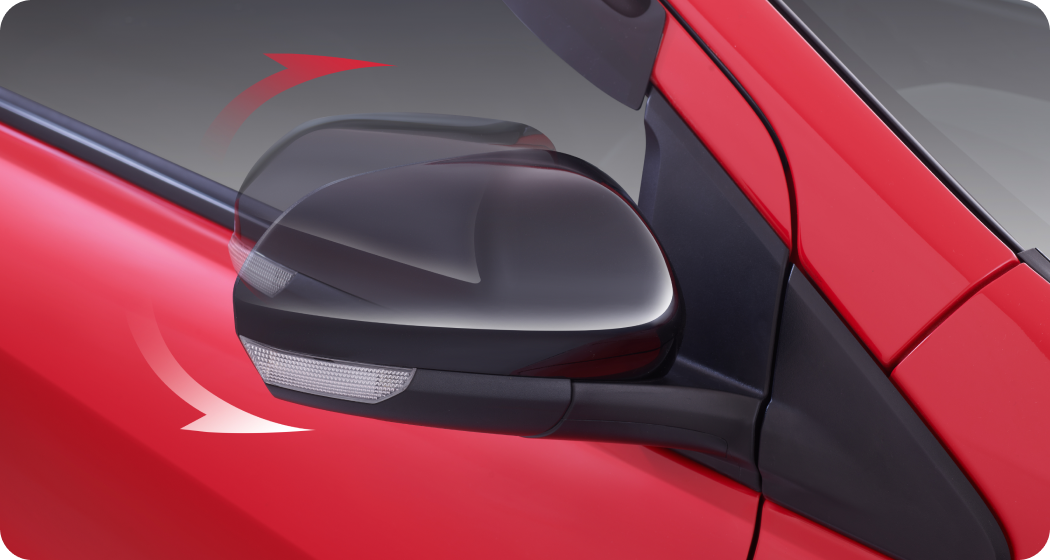 | Black Outer Mirror with Auto Folding | Melewati jalan sempit lebih nyaman dengan spion yang dapat dilipat & diatur otomatis dari dalam kabin Tipe 1.3 R |